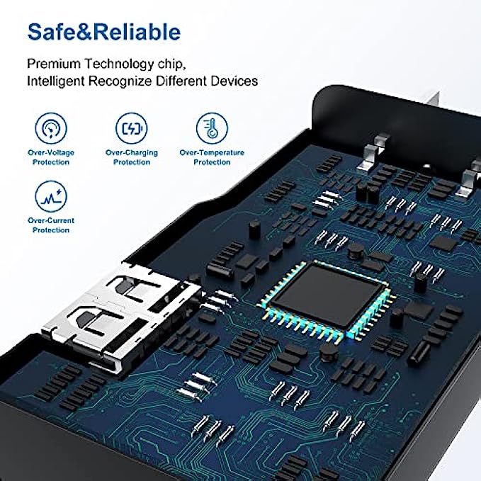 • 【Safeguard Protection】USB c Android chargers comes with premium built-in safeguards and intelligent IC identification technology to prevent against short circuit, over-current, over-voltage, over-heating and over-charging. It can intelligently recognize the battery type and status, will automatically stop charging when fully charged for a safety charging and long lifespan.